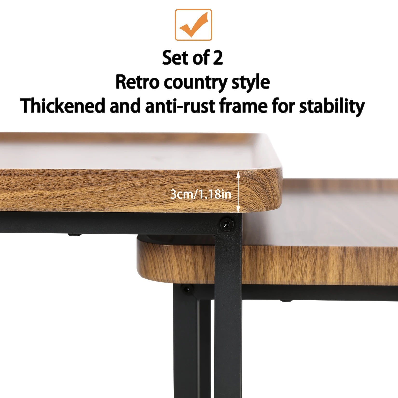 2-Piece Nesting Coffee Table Set - Industrial Coffee Table Set, Stacking Vintage Side End Table